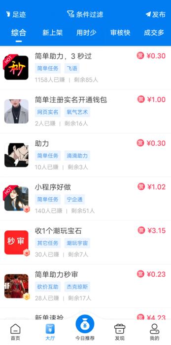 1、一款真实可靠的手机做任务赚钱平台,和趣闲赚、悬赏猫类似,加入无需任何投资;