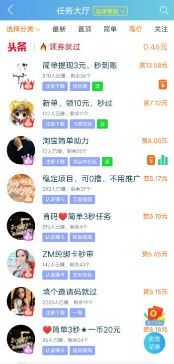 2、趣闲赚悬赏大厅有上万个悬赏任务,让你任务做不停赚不停。悬赏任务的类型也是多种多新,有注册下载、砍价关注、推广小程序、浏览赚钱和电商返利等,肯定会有你喜欢的赚钱任务。做任务赚钱步骤也异常简单,报名承接悬赏任务——完成任务提交任务要求截图或者信息——商家审核后赏金自动到账。每天完成的悬赏任务越多,能领到的赏金也越多,奖励上不封顶。