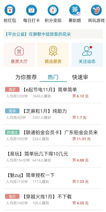 8、赏金游戏:红包团、坚持就能挣大钱、悬赏比赛应有尽有。